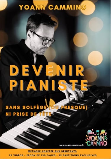 Je t'apprends à jouer du piano avec une méthode innovante et garantie sans stress ni solfège. Tu trouveras sur mon site mes fameux tutos VIP adaptés aux débutants, mes outils pédagogiques, ma formation en ligne best-seller et bien plus encore.